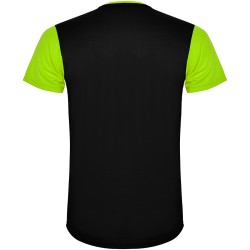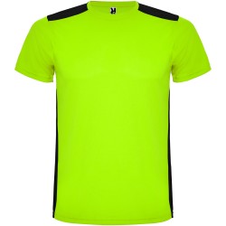 Tissu technique et respirant, facile à sécher. Col ras-du-cou. Confectionné avec deux tissus en polyester sur le dos et les épaules. Tissu œil d’oiseau à l’avant et tissu en maille 3D respirant à l’arrière. Tissu conçu pour absorber l’humidité. Point arrière décoratif en zigzag sur les côtés et les épaules. Patron du dos légèrement plus long. Étiquette détachable.