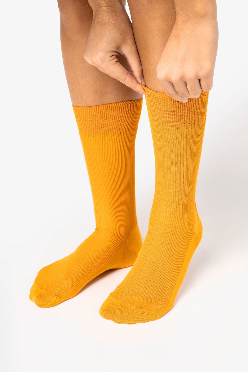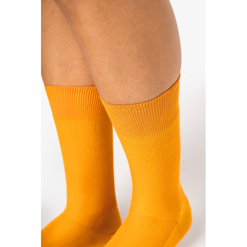 99% coton biologique / 1% élasthanne. Fabrication Italie. Fil égyptien. Maille fine. Talons et extrémités renforcés. Elasthanne sur la partie haute de la chaussette pour extensibilité et maintien : bord côte 1 x 1. Tige italienne haute : 32 cm à 36 cm.
