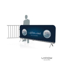 Couverture double-face pour barrière municipale Vauban fournie par les collectivités. Matière 100% polyester Spandex 260 g / m². La matière contient de l'elasthanne et devient donc plus facile à installer. La barrière est cousue sur tout le contour sauf sur les emplacements destinés aux accroches pour relier les barrières entre elles. Impression en sublimation numérique allover. Œillets sur le bas possibles sans surcoût. Dimensions disponibles : 80 x 200 cm et 80 x 250cm.