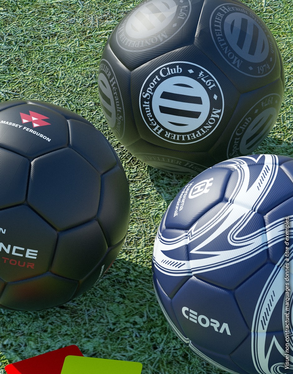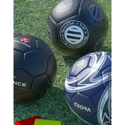 Ballon de football 100% personnalisé idéal pour la promotion et la communication. Taille 5 officielle. Diamètre : 21-23cm. Circonférence : 69 à 71cm. Poids officiel : 440g. Construction hybride soudé/ cousu pour une résistance optimale. Assemblage en 12 ou 32 panneaux. Matière TPU 4.00mm (finition mat disponible en option). Vessie renforcée en nylon. Personnalisation intégrale en sérigraphie sur tous les panneaux (jusqu’à 6 couleurs maximum). Idéal pour les terrains d’entrainement et la compétition. Ballon livré non gonflé sous polybag individuel. Aiguille en option. Minimum de commande : 50 pcs