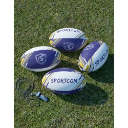 Mini ballon de rugby 100% personnalisé en caoutchouc vulcanisé à picots. Poids : 150g. Longueur gonflé : 17cm. Longueur à plat : 21cm. Vessie en latex synthétique. Cousu machine 4 panneaux. Personnalisation intégrale sur l’ensemble du ballon en sérigraphie (6 couleurs maximum). Ballon livré non gonflé d’office. Ballon livré sous polybag individuel. Aiguille en option. Minimum de commande : 100 pcs
