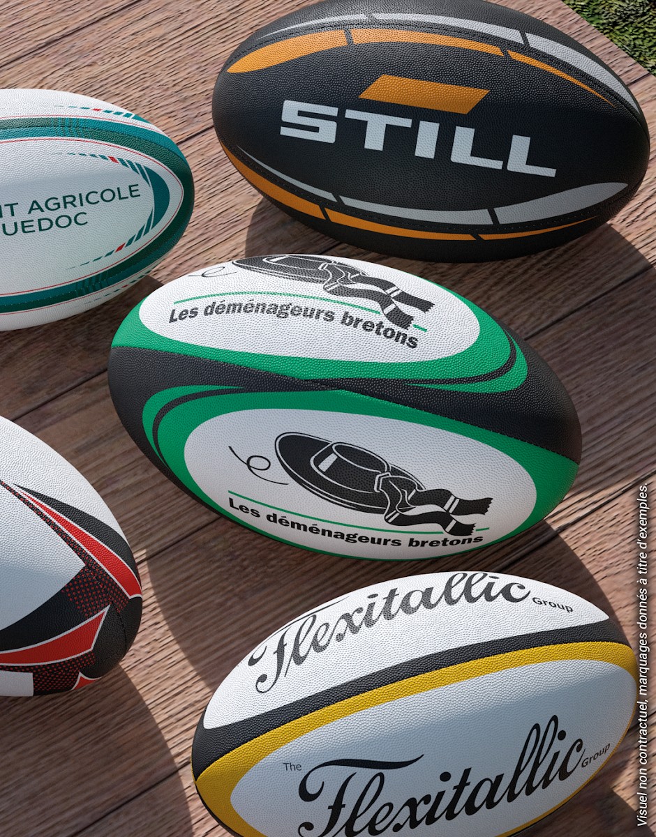 Mini ballon de rugby 100% personnalisé en caoutchouc vulcanisé à picots. Poids : 250g. Longueur gonflé : 21cm. Longueur à plat : 33cm. Vessie en latex synthétique. Cousu main 4 panneaux. Personnalisation intégrale sur l’ensemble du ballon en sérigraphie (6 couleurs maximum). Ballon livré non gonflé d’office. Ballon livré sous polybag individuel. Aiguille en option. Minimum de commande : 100 pcs