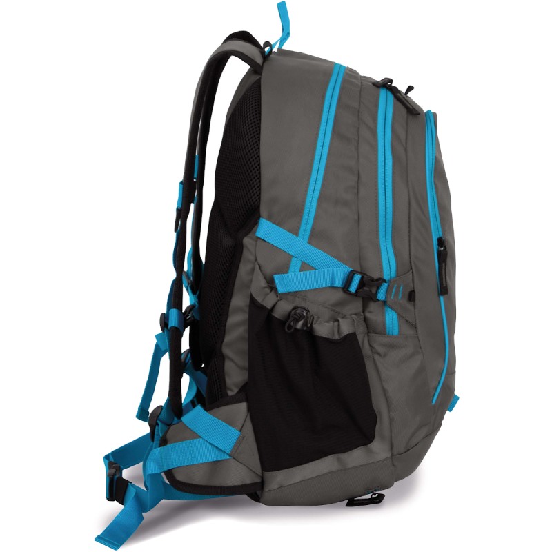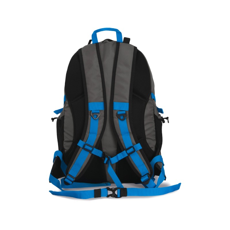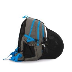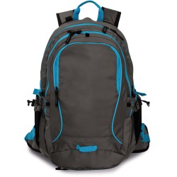 100 % polyester. Sac à dos style urbain, adapté aux loisirs. Grand compartiment principal avec un espace de rangement pour ordinateur jusqu'à 15''. Large poche frontale. Compartiment intermédiaire. Filet porte casque amovible qui se replie dans la poche zippée prévue à cet effet sous le sac. Sangles de compression latérale et ceinture ventrale pour un meilleur maintien. Poches côté en filet élastique avec cordon de serrage. Bretelles ergonomiques et dos respirant.