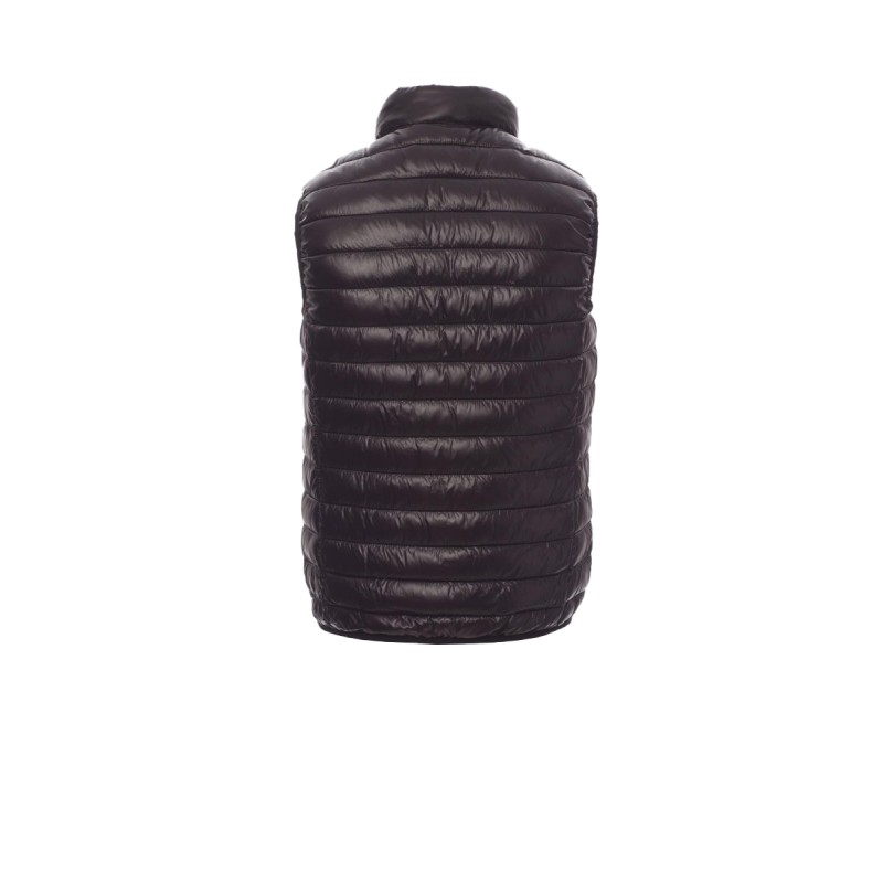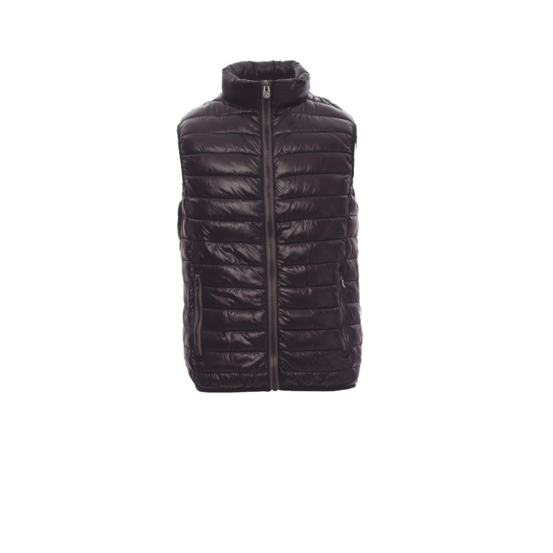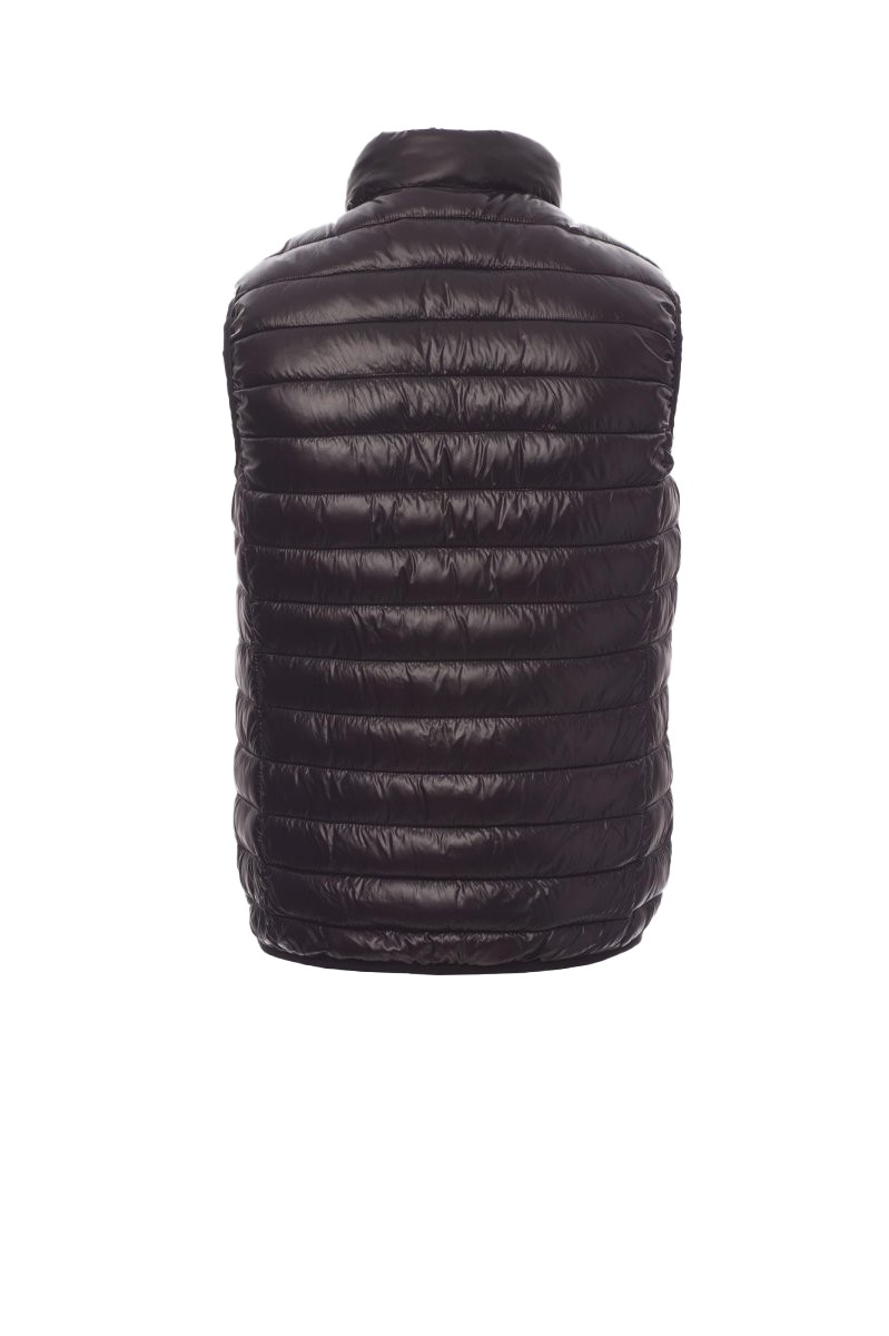Gilet/doudoune homme à zip de 8 mm en plastique avec curseur en métal, fin liseré à la taille, deux poches extérieures. Intérieur : rembourrage polyester effet duvet, trois poches.