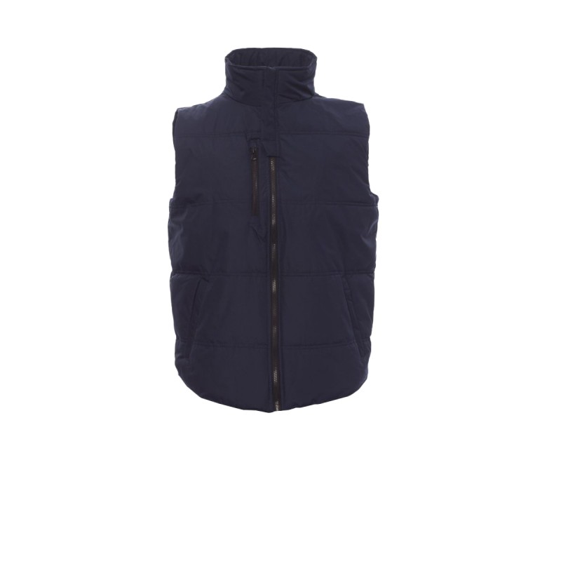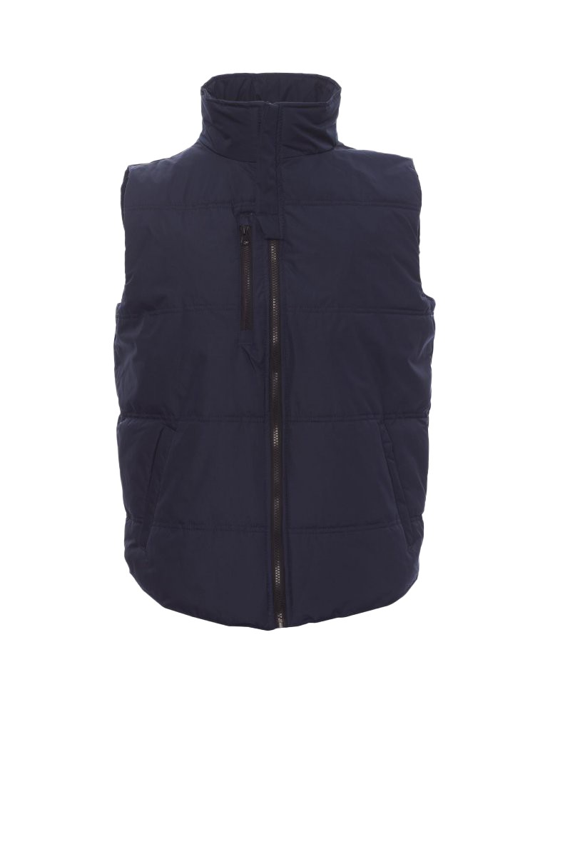 Gilet unisexe à fermeture éclair de 8 mm en plastique avec curseur en métal, deux poches latérales à fermeture éclair, une poche de poitrine. Intérieur: matelassé et en micropolaire à contraste.