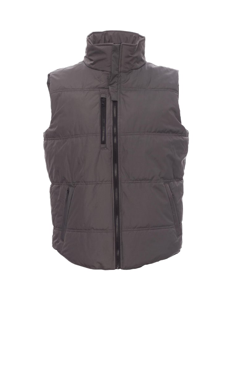 Gilet unisexe à fermeture éclair de 8 mm en plastique avec curseur en métal, deux poches latérales à fermeture éclair, une poche de poitrine. Intérieur: matelassé et en micropolaire à contraste.