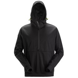 Fabriqué à partir d’un tissu Softshell fin et flexible à 3 couches, ce sweat-shirt à capuche demi-zippé offrre une excellente protection contre le vent, une bonne respirabilité et une grande liberté de mouvement. Grande poche kangourou à l’avant. Pour une meilleure ventilation, ce sweat à capuche est doté d'une fermeture éclair bidirectionnelle sur le devant, de poches en maille et d'oeillets sous les manches. Patte de boutonnage intérieure avec détails réfléchissants et protège-menton.