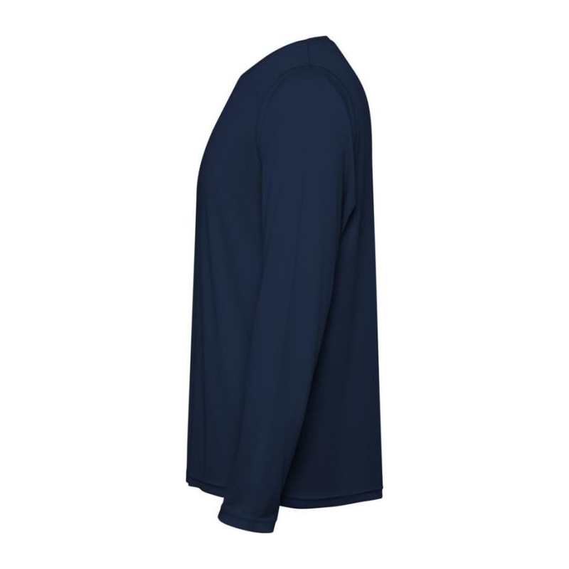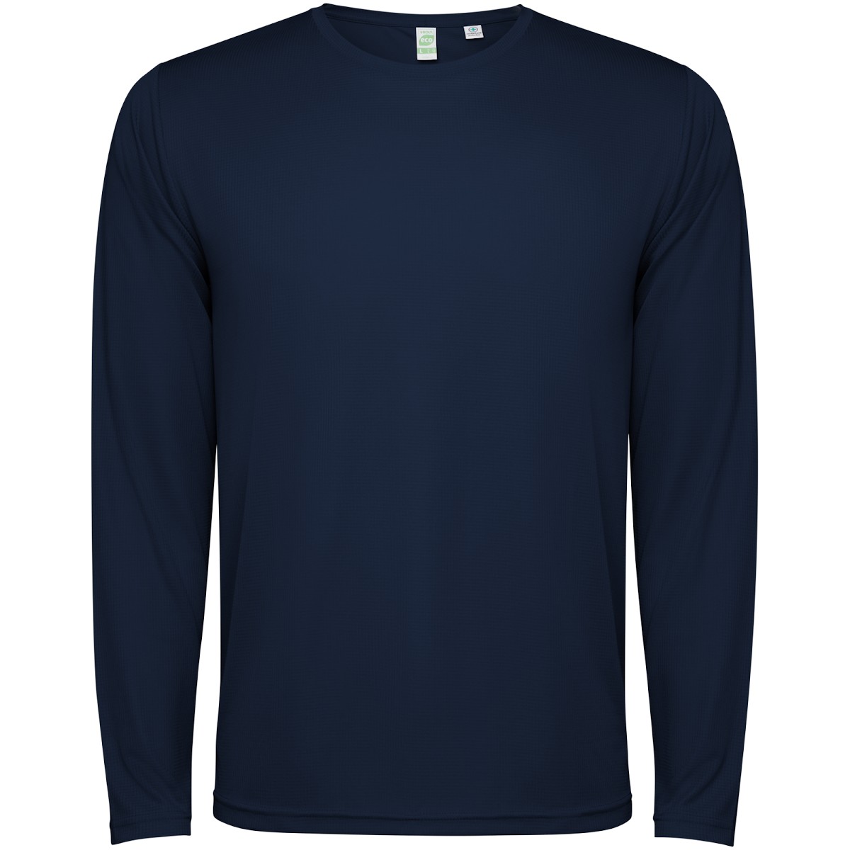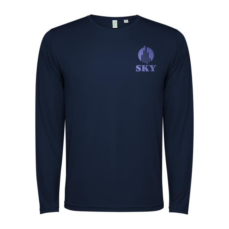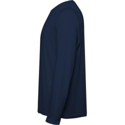 T-shirt technique unisexe à manches longues pour enfant. Col avec coutures assorties. L’ourlet du dos est légèrement plus long que celui du devant. Coutures latérales décalées vers l’avant.