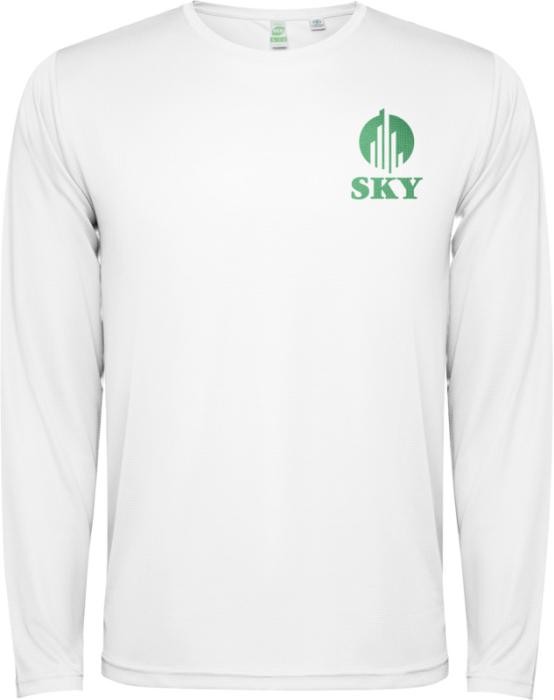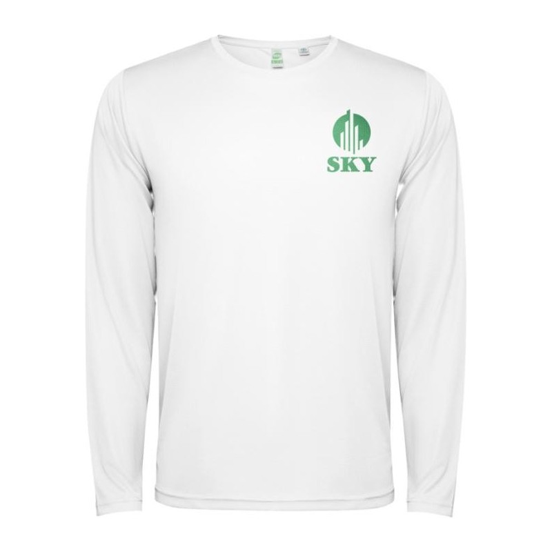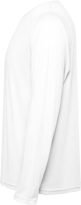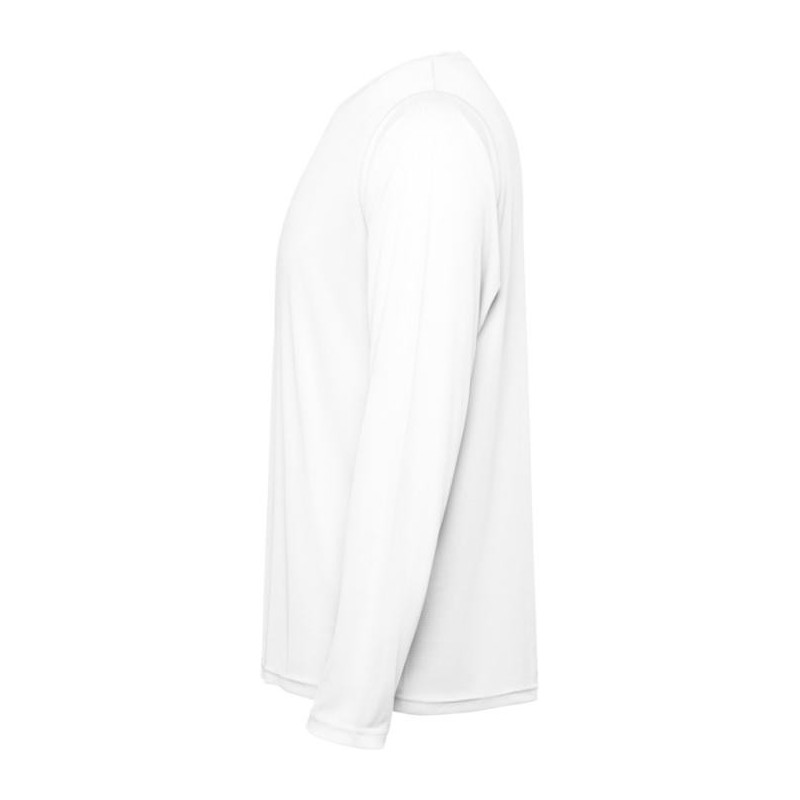 T-shirt technique unisexe à manches longues pour enfant. Col avec coutures assorties. L’ourlet du dos est légèrement plus long que celui du devant. Coutures latérales décalées vers l’avant.