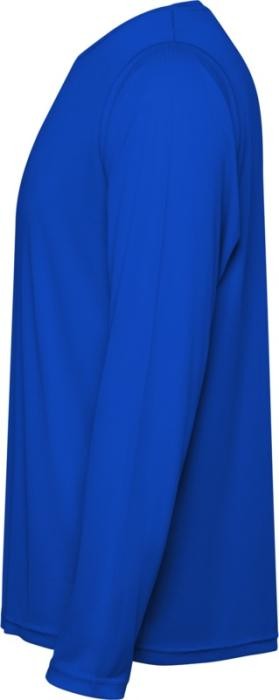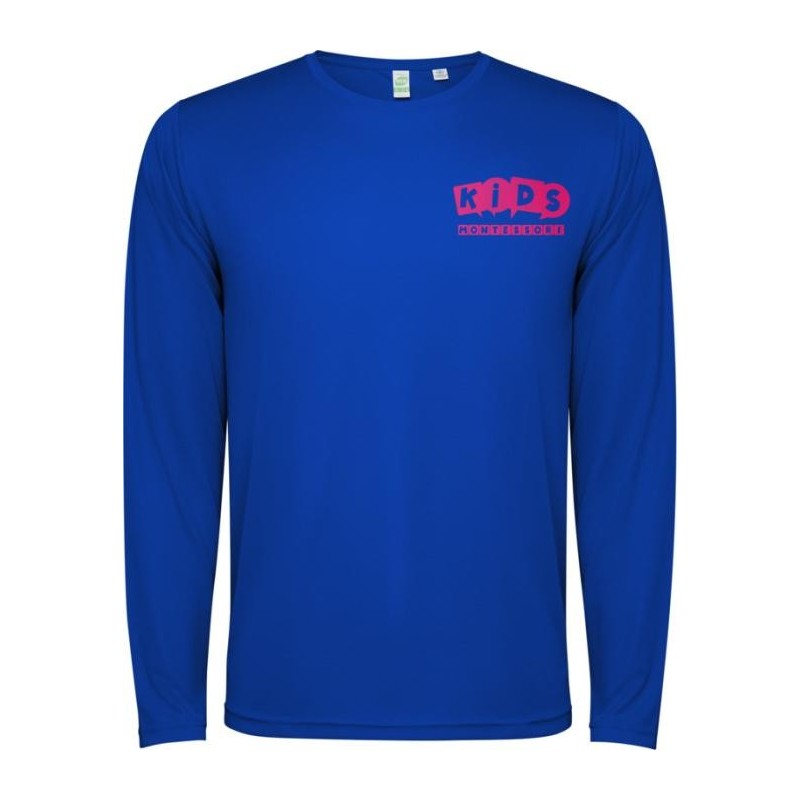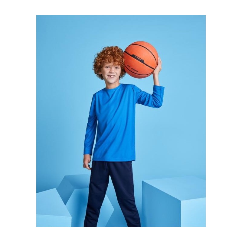T-shirt technique unisexe à manches longues pour enfant. Col avec coutures assorties. L’ourlet du dos est légèrement plus long que celui du devant. Coutures latérales décalées vers l’avant.