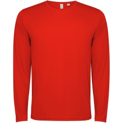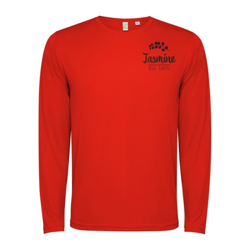 T-shirt technique unisexe à manches longues. Col avec coutures assorties. L’ourlet du dos est légèrement plus long que celui du devant. Coutures latérales décalées vers l’avant.