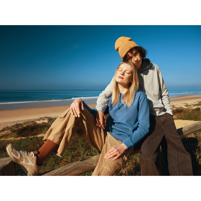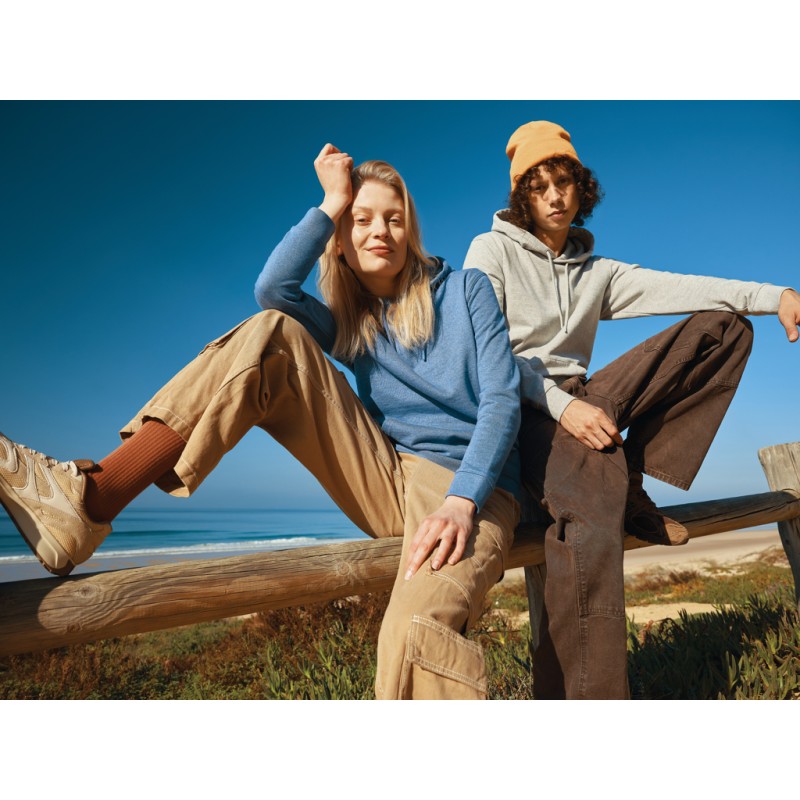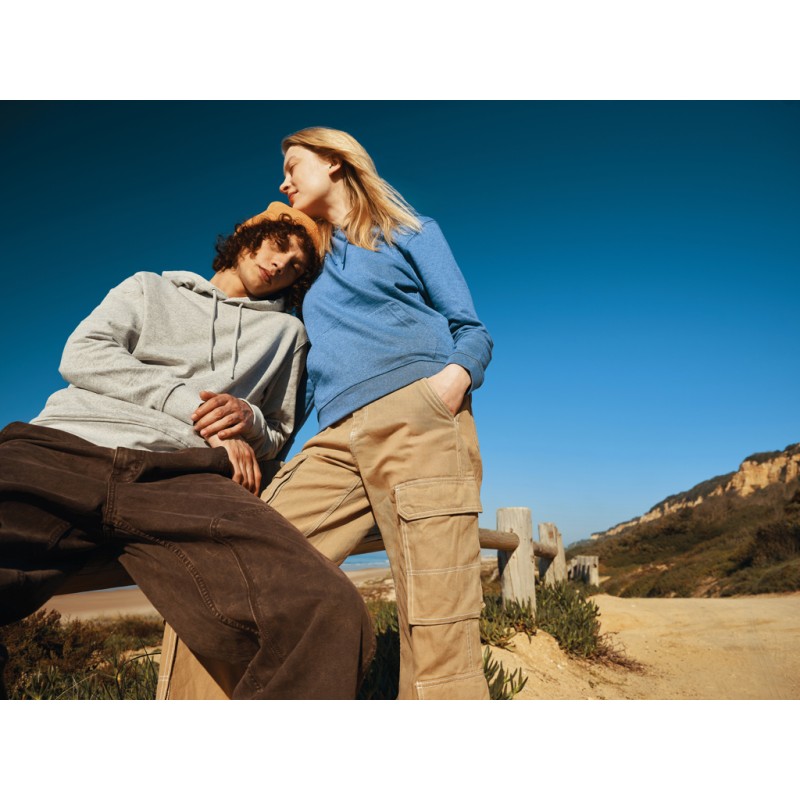 Sweat à capuche unisexe de coupe classique, 100 % coton, dont 50 % recyclé et 50 % biologique, en 340 G/M². Il s'agit du même sweat à capuche que notre sweat à capuche iqoniq 'Jasper'. Il n'y a qu'une seule différence : nous avons éliminé le processus de teinture. Nous avons mélangé du coton recyclé dans sa couleur existante avec du coton biologique vierge. C'est ce qui donne ce magnifique effet chiné. L'intérieur est en polaire brossée pour plus de confort. L'utilisation de véritables matériaux de tissus recyclés & organiques et les déclarations d'impact environnemental sont garanties, en utilisant le traceur physique disruptif AWARE™ et la technologie blockchain. En scannant le code QR, vous aurez accès à un passeport numérique dédié du produit. 2 % des recettes de chaque produit vendu seront reversés à Water.org. Ce produit est certifié OEKO-TEX® STANDARD 100, 2303045 Centexbel. En raison de la nature des fils recyclés, des impuretés et des variations de couleur peuvent
