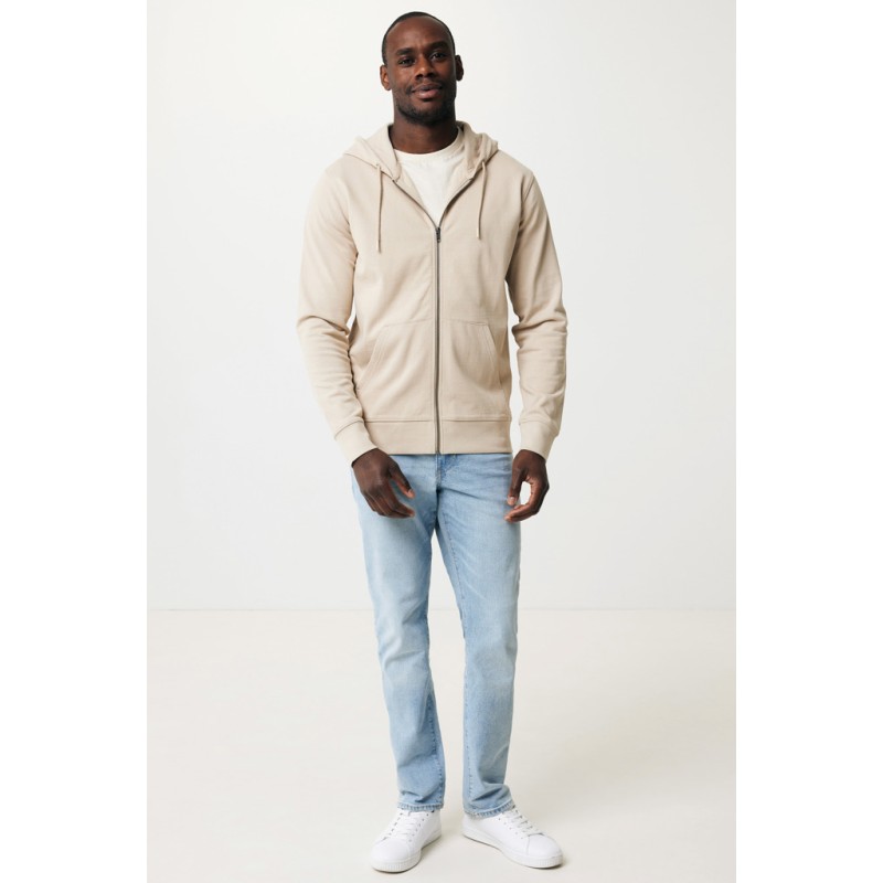 Sweat à capuche avec fermeture à zip de coupe moderne unisexe 100% coton, dont 50% recyclé et 50% biologique, en 340 G/M². Le sweat à fermeture zippée est doté d'une capuche à double épaisseur, de manches longues et côte 1x1. L'intérieur est en molleton brossé pour plus de confort. L'utilisation de véritables matériaux de tissus recyclés & organiques et les déclarations d'impact environnemental sont garanties, en utilisant le traceur physique disruptif AWARE™ et la technologie blockchain. En scannant le code QR, vous aurez accès à un passeport numérique dédié du produit. 2 % des recettes de chaque produit vendu seront reversés à Water.org. Ce produit est certifié OEKO-TEX® STANDARD 100, 2303045 Centexbel. En raison de la nature des fils recyclés, des impuretés et des variations de couleur peuvent apparaître.