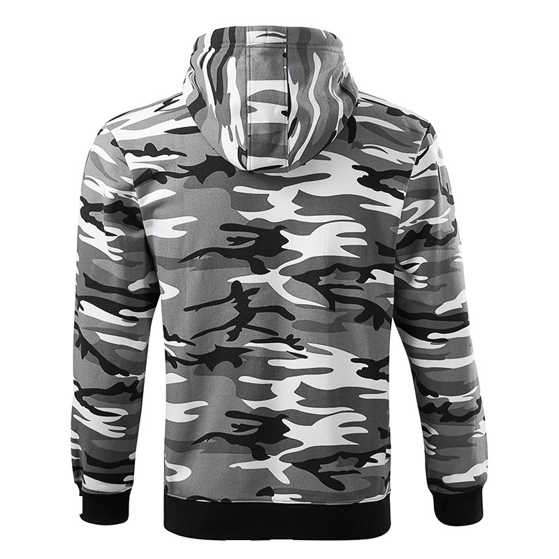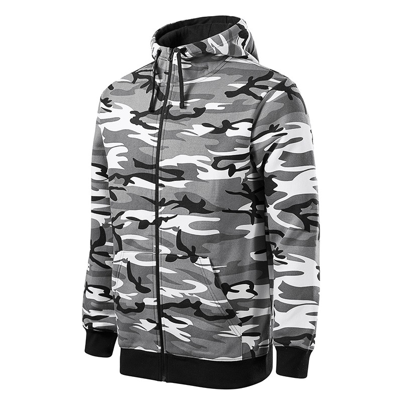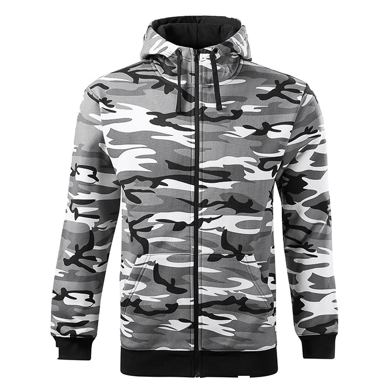 Sweat-shirt capuche Homme Gamme Camo Zipper Bande de propreté ton sur ton Bas de manches et bas de corps en bord côtes avec élasthanne 2 Poches latérales Capuche doublée avec cordon de serrage Col montant Fermeture full zip Intérieur molletonné Coupe droite 65% coton 35% polyester 300 gr /m²