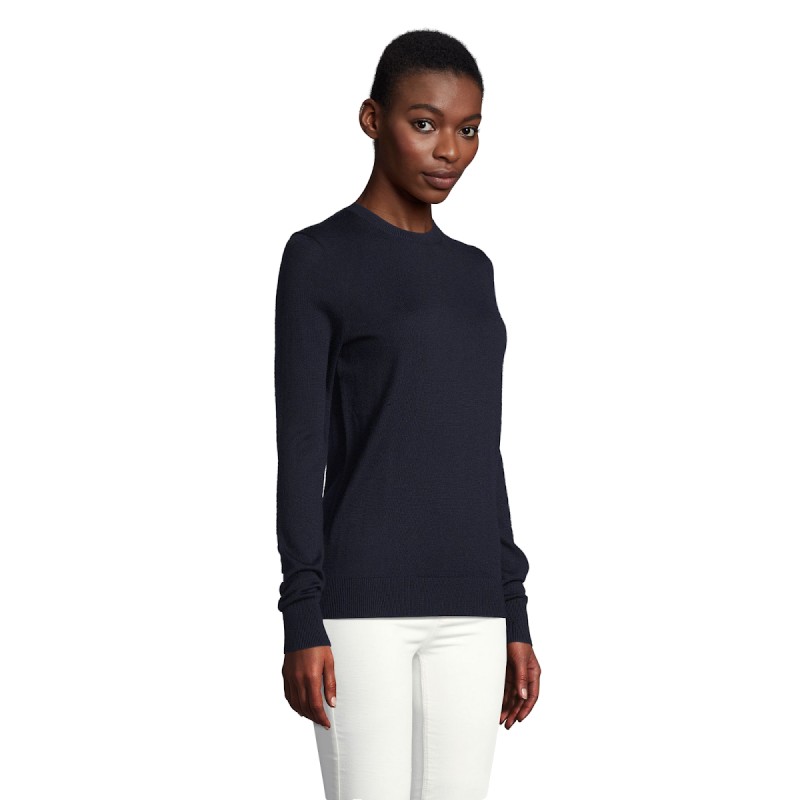 Moderne et intemporel, le pull col rond est indispensable dans le vestiaire féminin. Sa matière est à la fois chaude, fine et élégante, de telle sorte qu'il peut être porté seul, avec une chemise ou sous une veste.