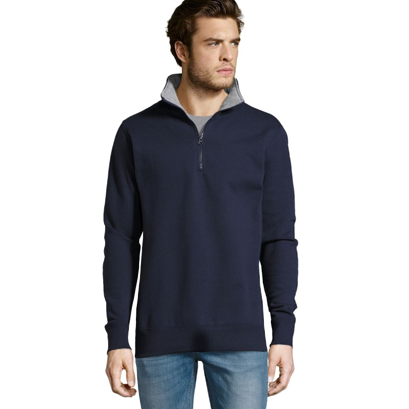 SWEAT-SHIRT HOMME COL CAMIONNEUR (1/4 ZIP)Bas et poignets en bord côte élasthanne