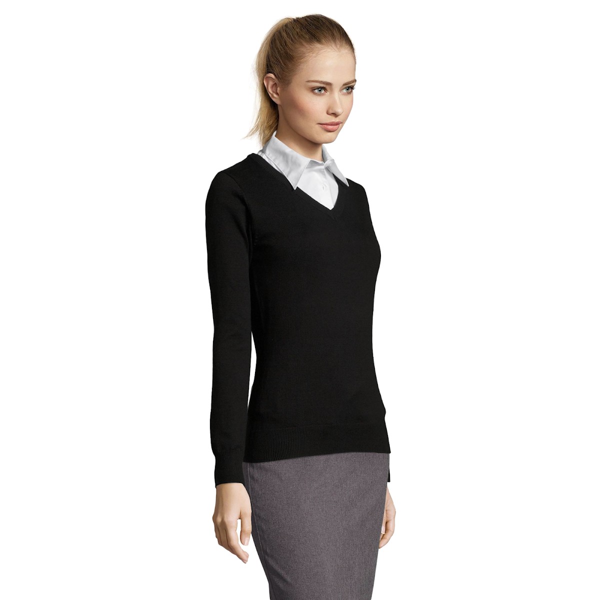 PULL COL V FEMMEManches montées
