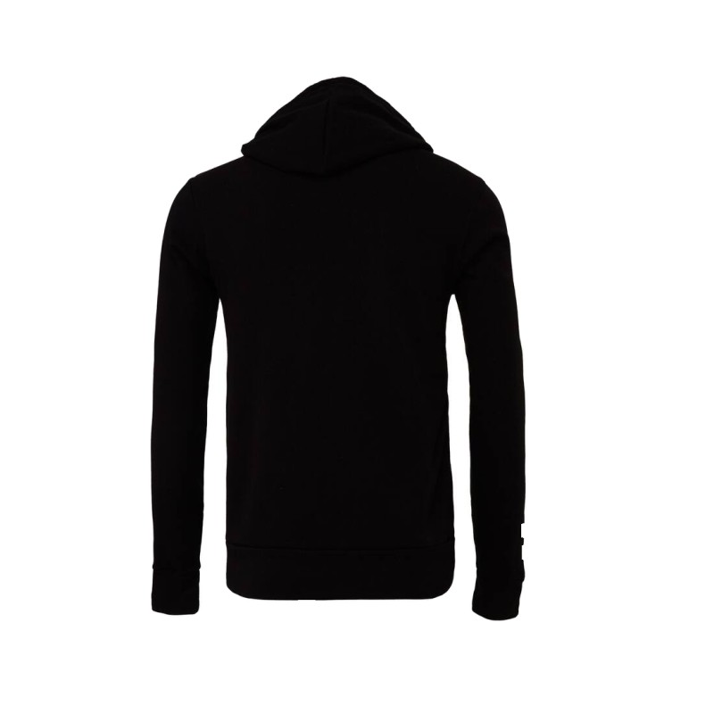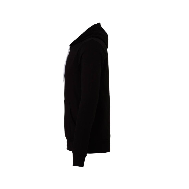 Coutures latérales. Modèle unisexe. Poche kangourou. Cordons blancs.