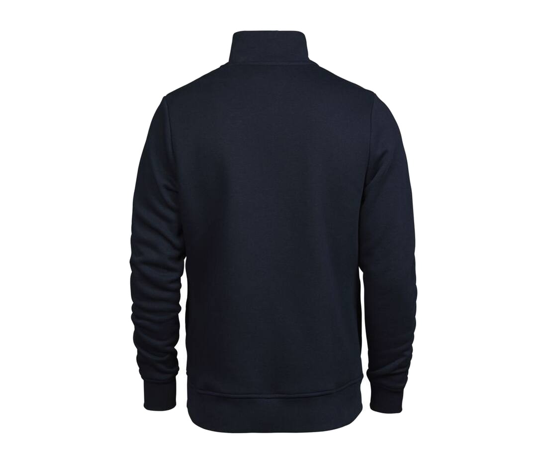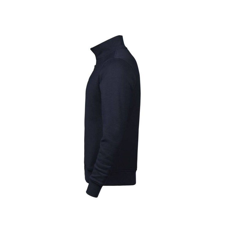 Sweat col zippé lourd. Col, taille et poignets en bords côte avec Lycra®. 2 poches latérales.