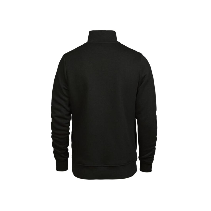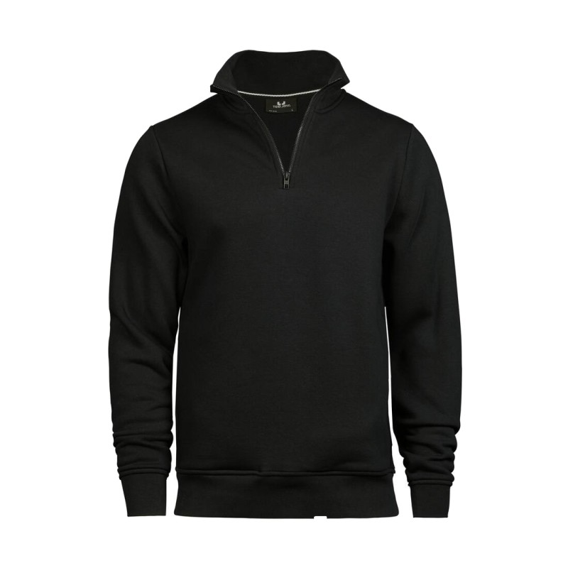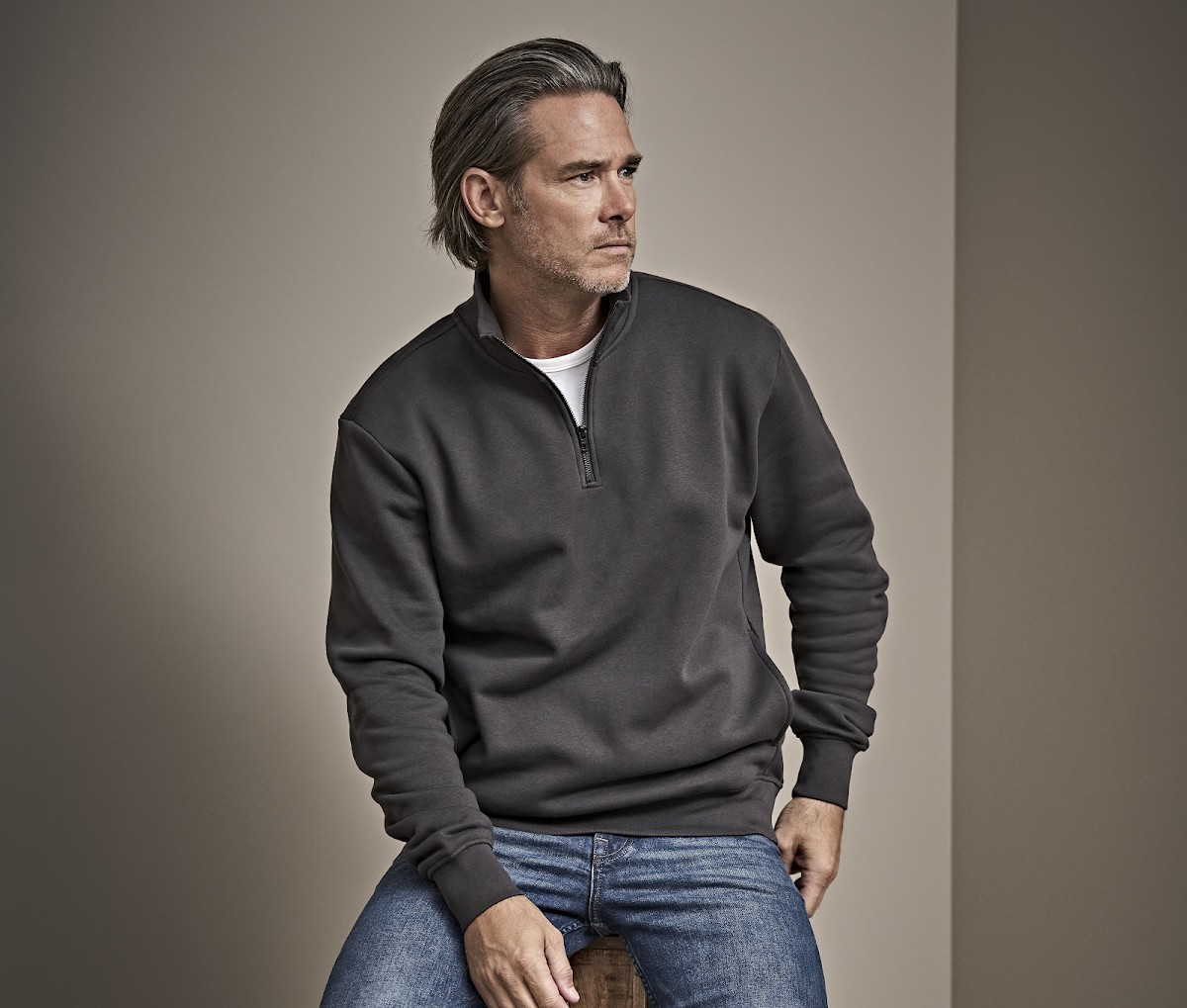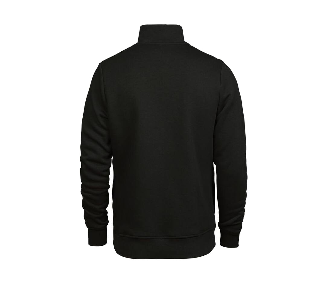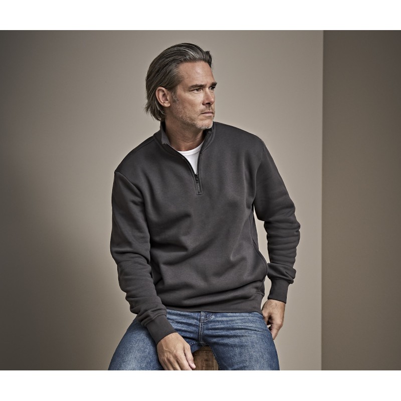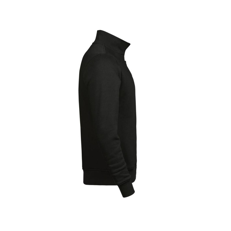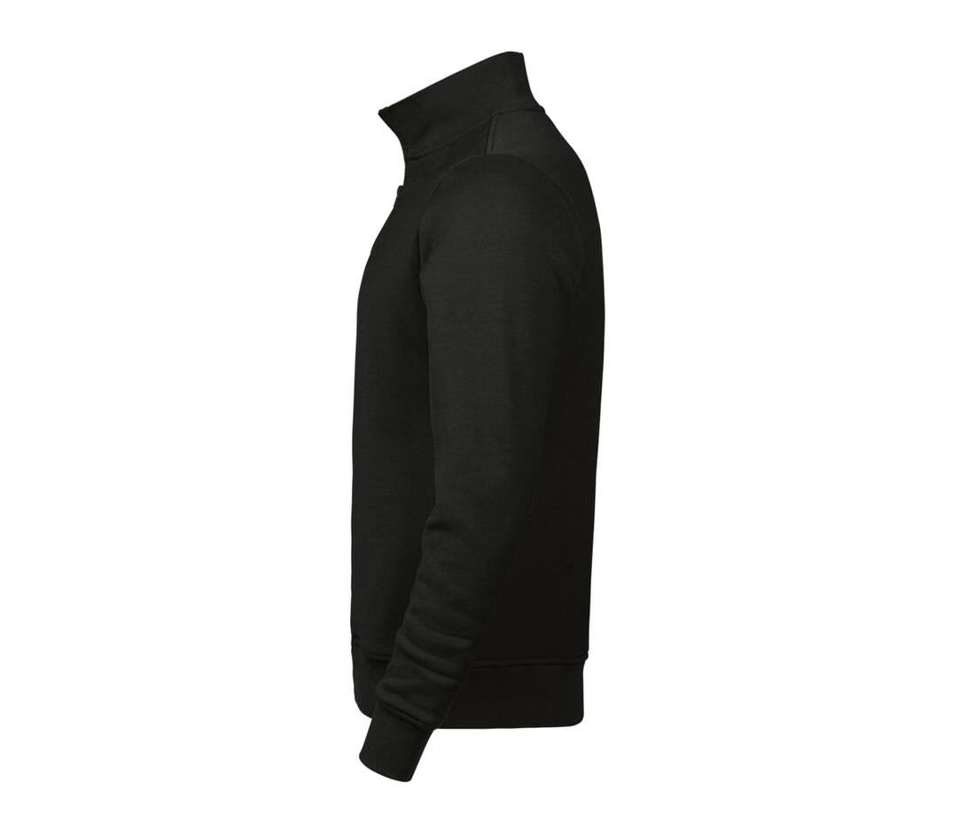 Sweat col zippé lourd. Col, taille et poignets en bords côte avec Lycra®. 2 poches latérales.