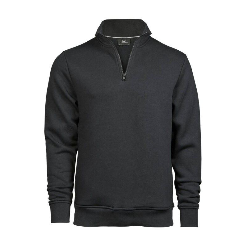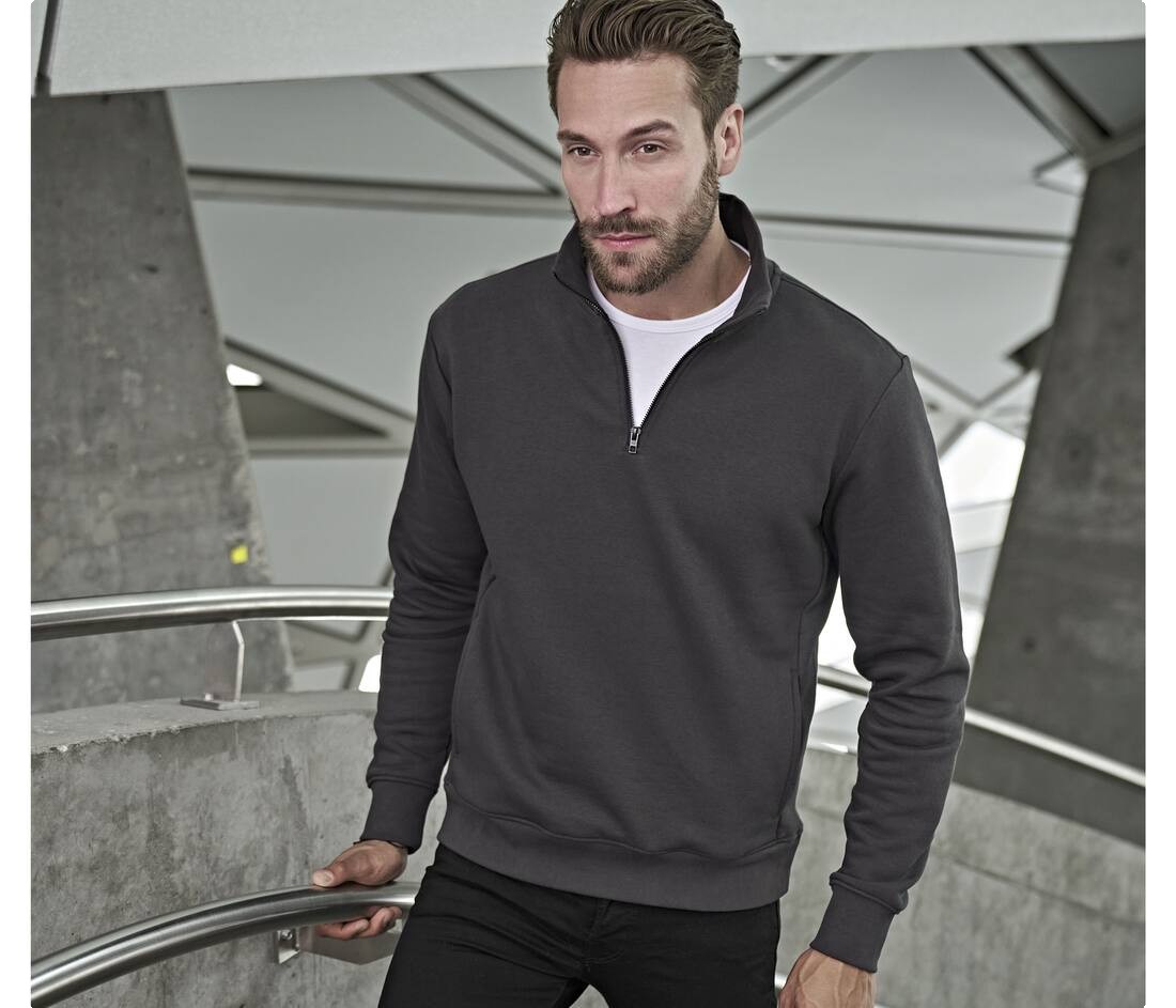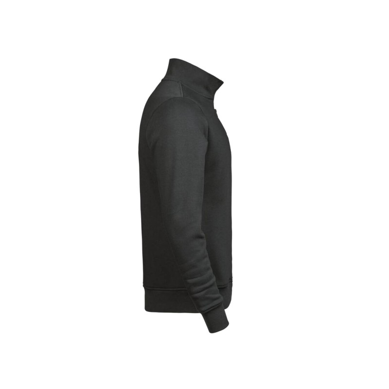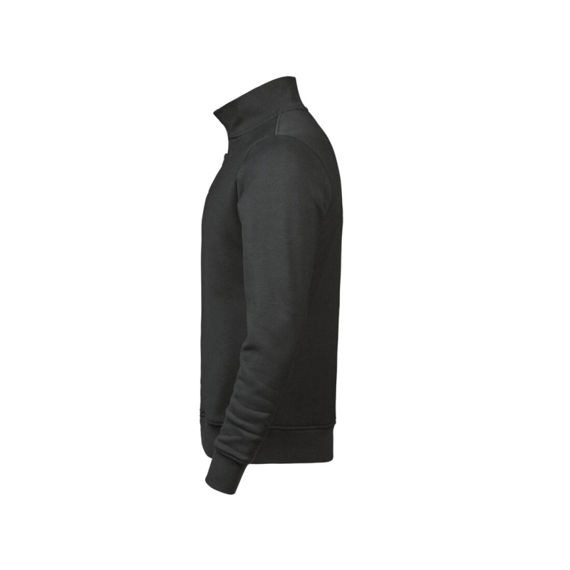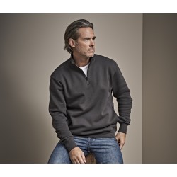 Sweat col zippé lourd. Col, taille et poignets en bords côte avec Lycra®. 2 poches latérales.
