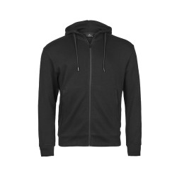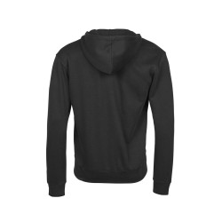 Capuche doublée et cordons. Deux poches ouvertes sur le devant. Bord côte avec élasthanne.