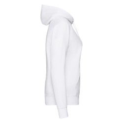 #Capuche double#Cordon ton sur ton plat#Coutures latérales pour une coupe féminine cintrée#Poche Kangourou#Taille et poignets avec bord côte en coton/LYCRA®