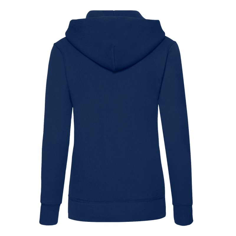 #Capuche double#Cordon ton sur ton plat#Coutures latérales pour une coupe féminine cintrée#Poche Kangourou#Taille et poignets avec bord côte en coton/LYCRA®