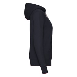 #Capuche double#Cordon ton sur ton plat#Coutures latérales pour une coupe féminine cintrée#Poche Kangourou#Taille et poignets avec bord côte en coton/LYCRA®