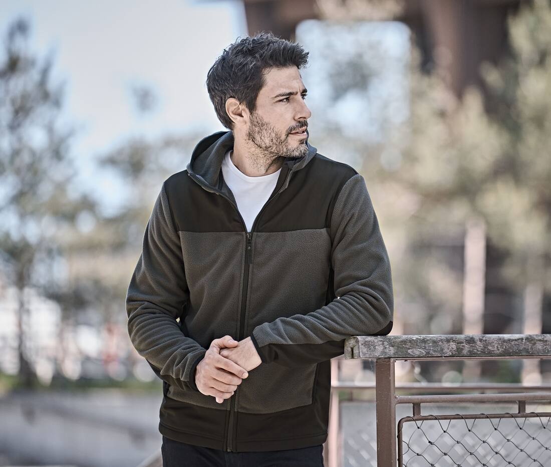 Panneaux renforcés. Taille ajustable avec cordon de serrage et stopper. Poignets élastiqués.