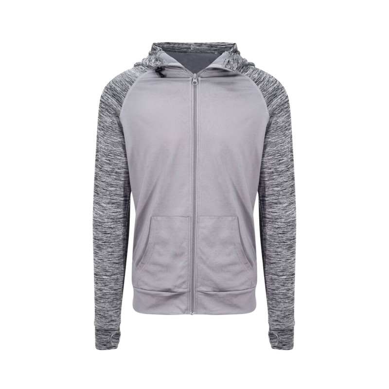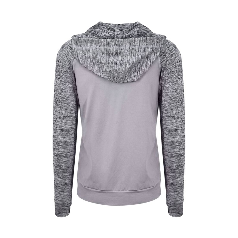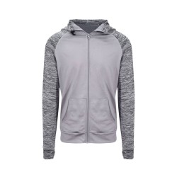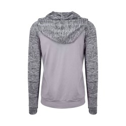 Manches raglan et contrastées. Poche kangourou. Fermeture grand zip. Séchage rapide.