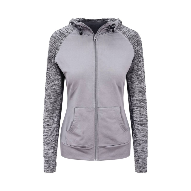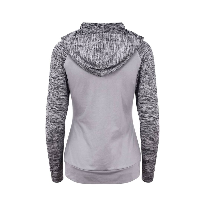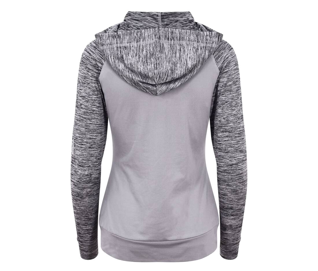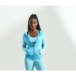 Manches raglan et contrastées. Poche kangourou. Fermeture grand zip. Séchage rapide.