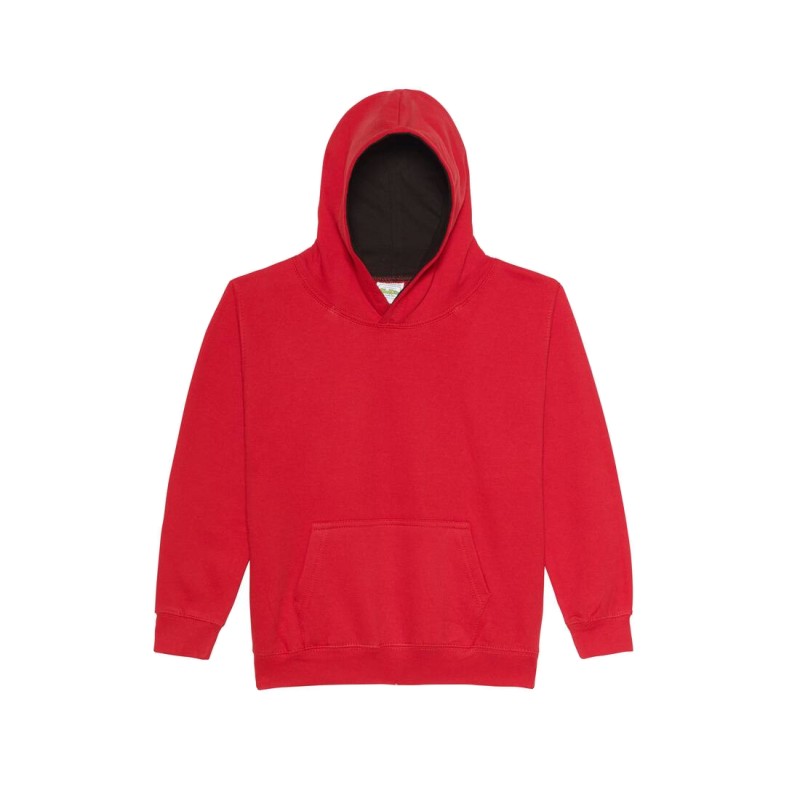 Sweat capuche contrastée. Sans cordon selon la nouvelle législation européenne. Poche kangourou.