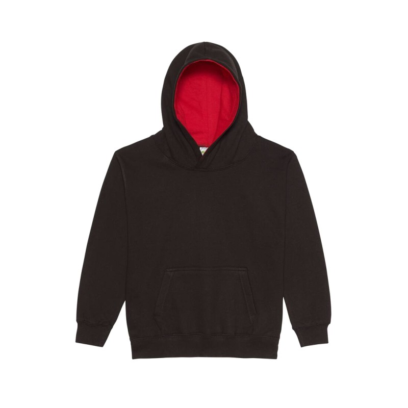 Sweat capuche contrastée. Sans cordon selon la nouvelle législation européenne. Poche kangourou.