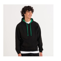 Sweat doublure capuche et cordon contrastés. Poche kangourou.