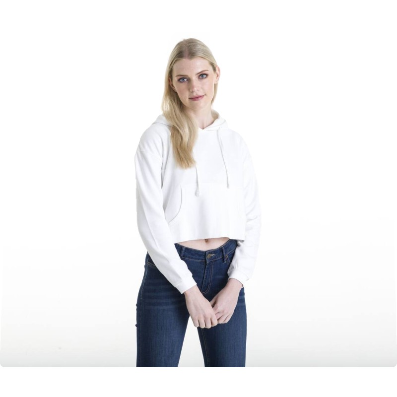 Sweat court à capuche. Capuche doublée. Cordon plat.