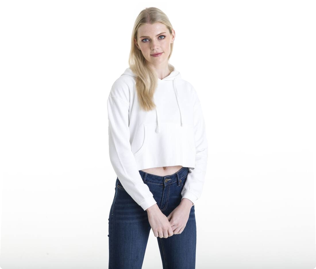 Sweat court à capuche. Capuche doublée. Cordon plat.