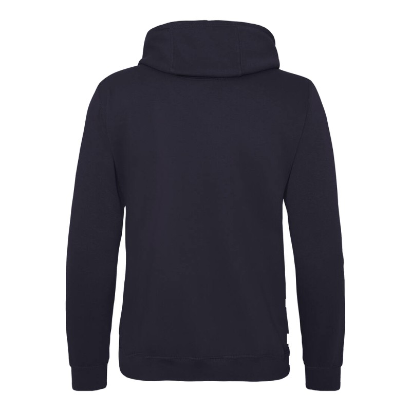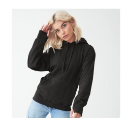 Capuche 3 panneaux doublée. Cordon de serrage plat. Poche kangourou.