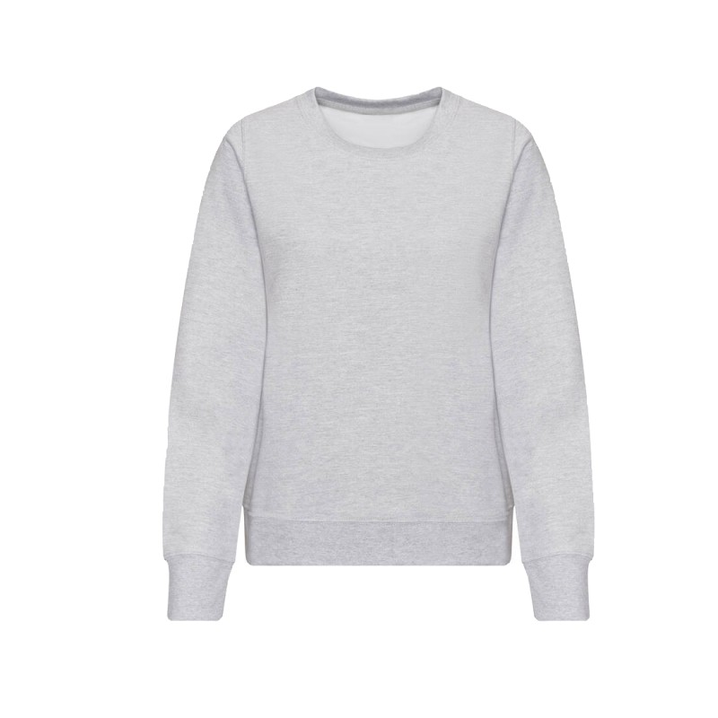 Coupe féminine classique. Col rond. Double surpiqûre. Intérieur brossé. Poignets et taille en bords côte.
