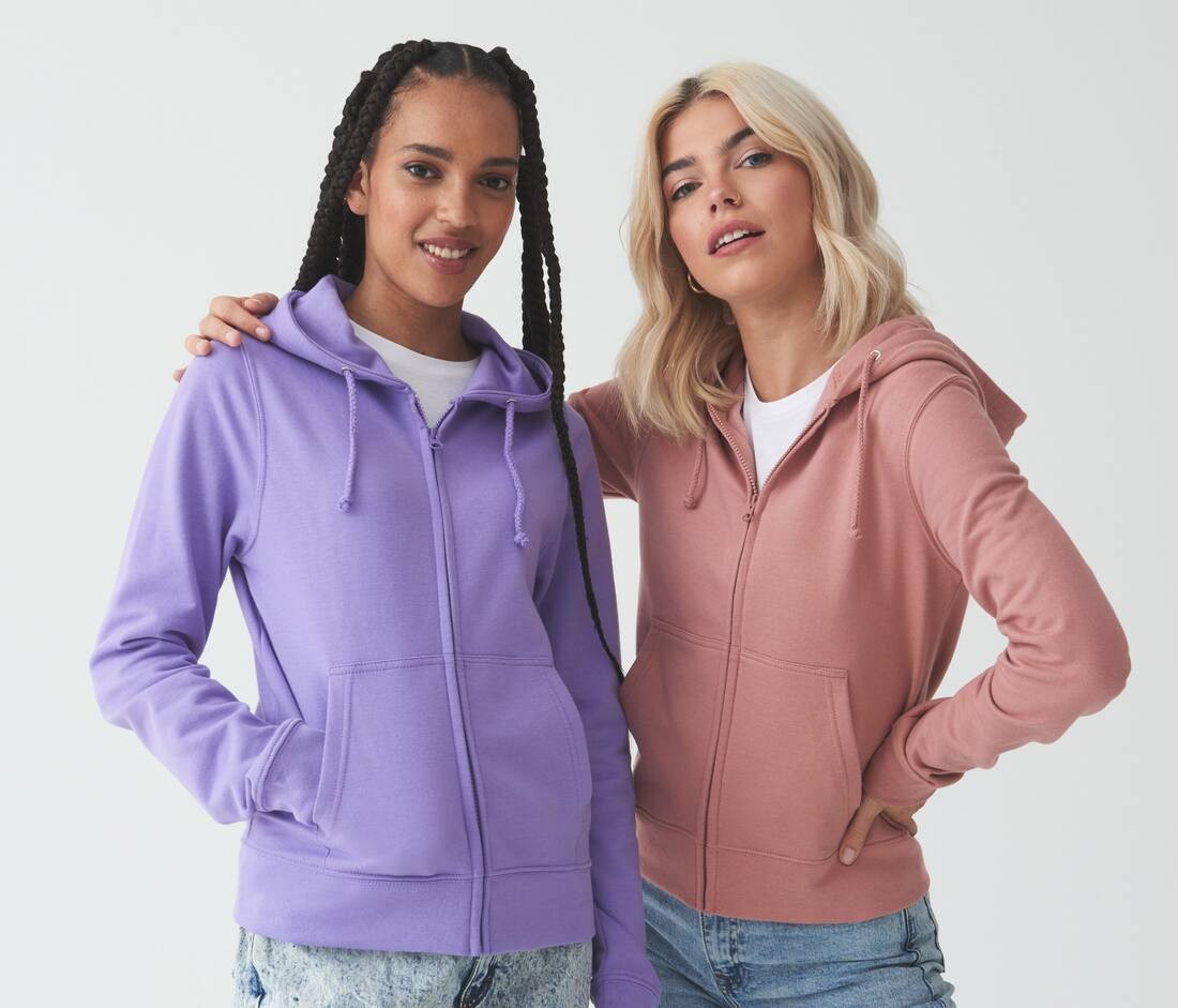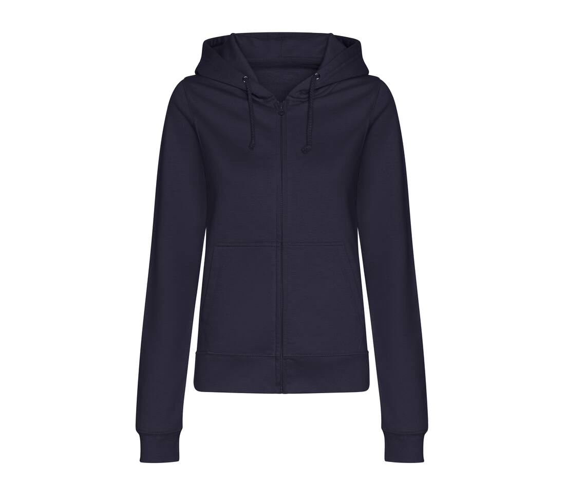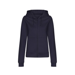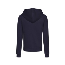 Fermeture zippée recouverte en plastique YKK. Capuche doublée. Cordon de serrage ton sur ton. Poche kangourou.
