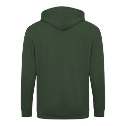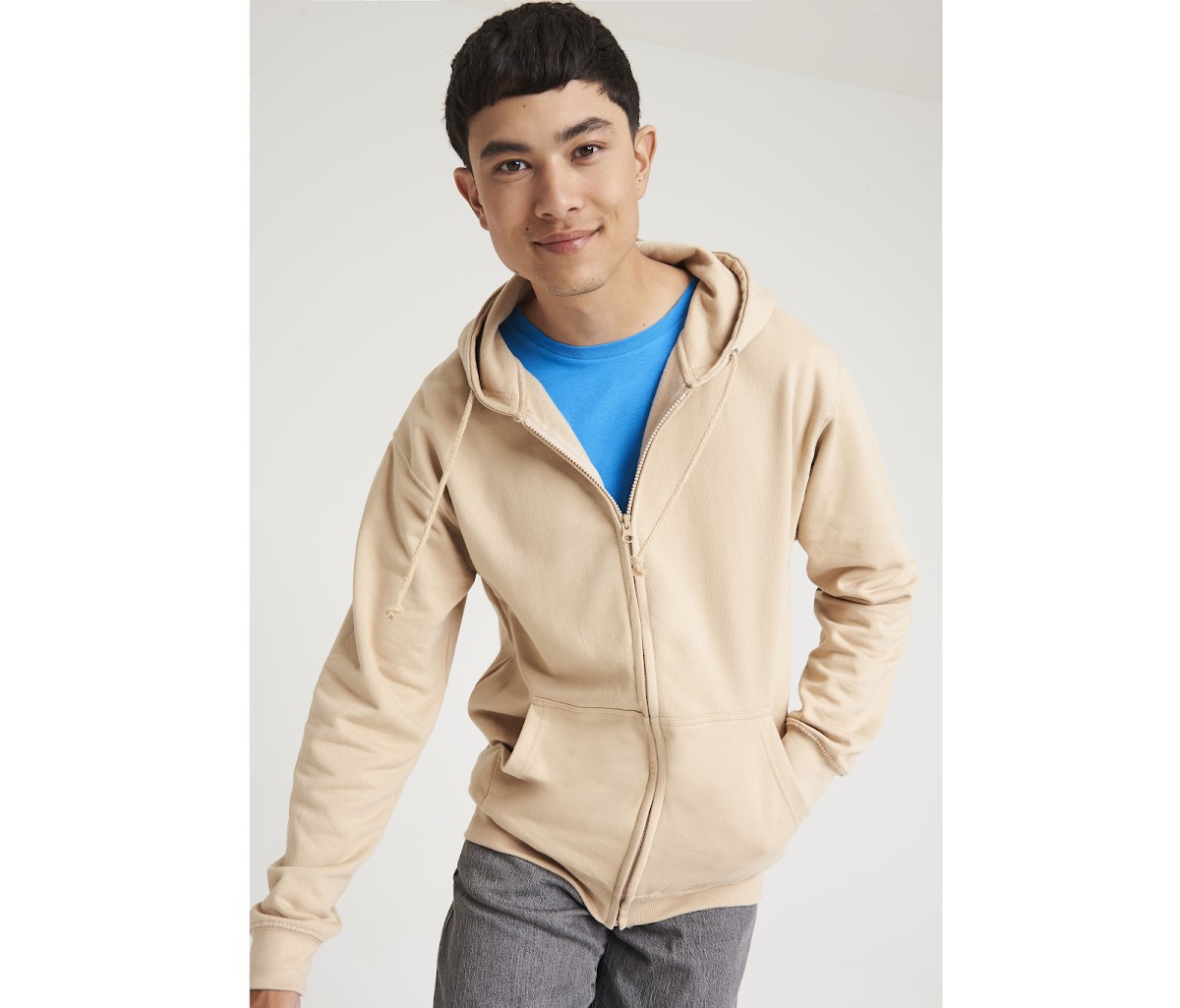 Grand zip. Zip invisible. Capuche doublée avec cordon ton sur ton.