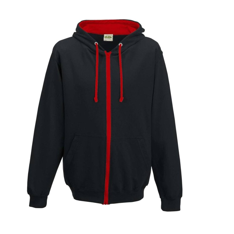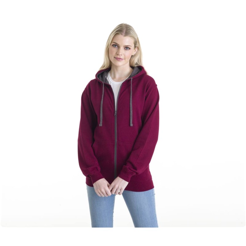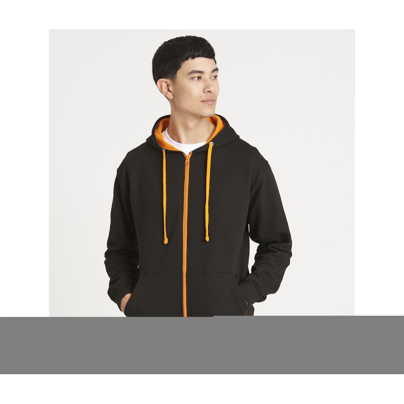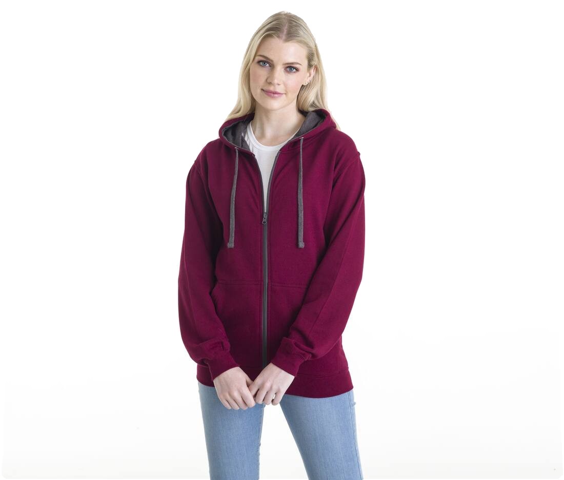 Sweat avec doublure capuche et grand zip contrastés. Cordon de serrage capuche contrasté. Poches frontales.