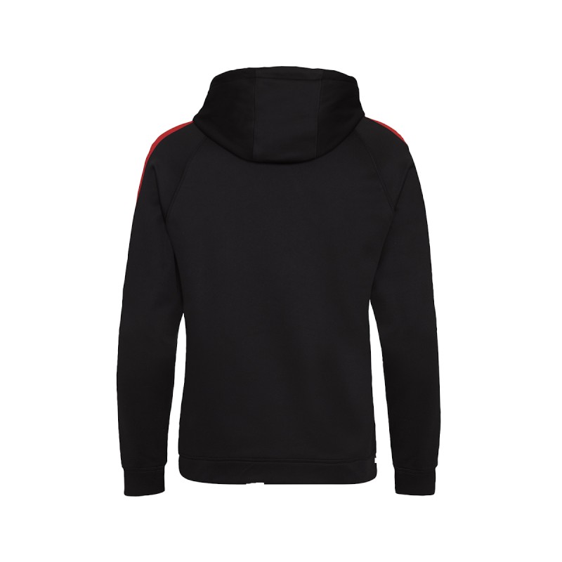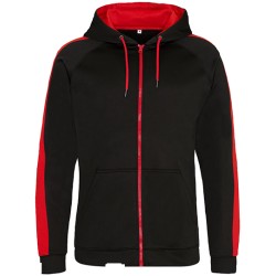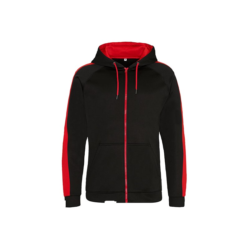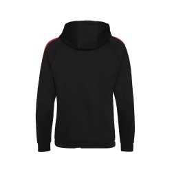 Fermeture éclair en plastique contrastée. Manches raglan avec panneau contrasté. Capuche trois panneaux avec intérieur contrasté. Intérieur brossé.