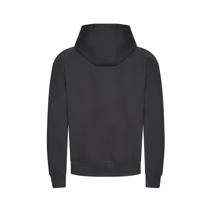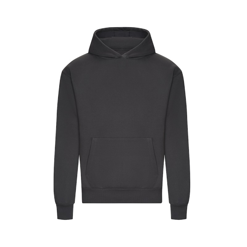 Coupe oversize. Capuche 3 pans doublée. Intérieur brossé. Extérieur en 100% coton.