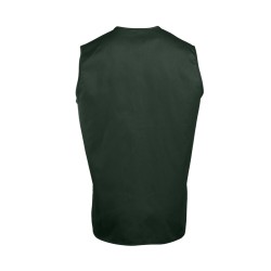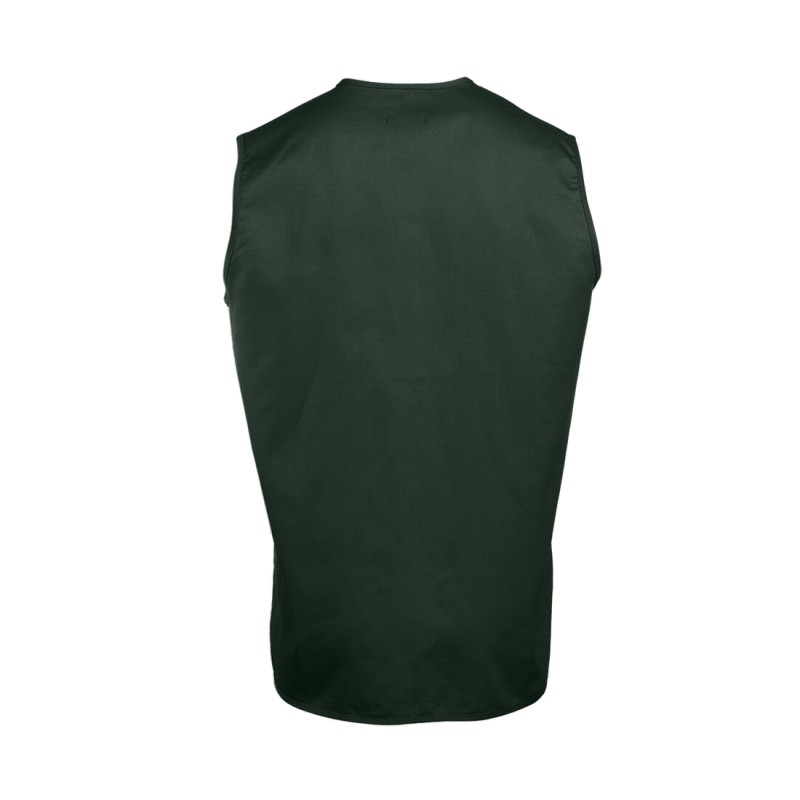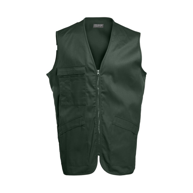 Gilet multi-poches : 6 poches dont 2 poches pour stylos, 1 poche double côté droit et 2 poches plaquées avec rabat. Absence de poche cœur pour le marquage.