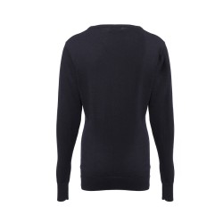 Jauge 12. Tour de cou, poignets et ourlet en côte 1x1. Manches droites.