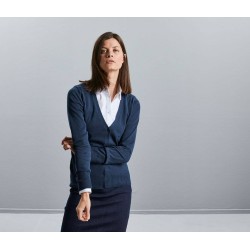 Cardigan femme col V au style contemporain et facile d’entretien. Boutons unis. Manches montées.