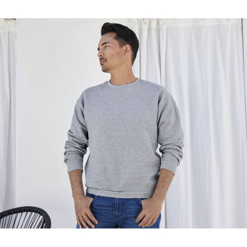 50% coton / 50% polyester DryBlend®. Molleton interieur gratté pré-rétreci. Fil Air Jet - pour une surface plus doux et anti-boulochage. Finitions double piqûre. Col et poignet en côte 1x1 avec élasthanne. Coupe classique.