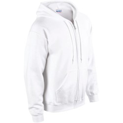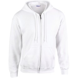 50% coton / 50% polyester. Molleton interieur gratté pré-rétreci. Fil "Air-Jet" pour une surface plus douce et anti-boulochage. Manches droites. Capuche non doublée avec cordons de couleur assortie. Zip métallique YKK® recouvert pour permettre l'impression sur tout le devant. Poches kangourou. Coupe classique.