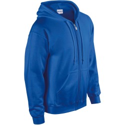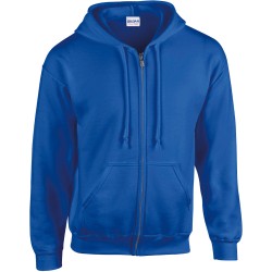 50% coton / 50% polyester. Molleton interieur gratté pré-rétreci. Fil "Air-Jet" pour une surface plus douce et anti-boulochage. Manches droites. Capuche non doublée avec cordons de couleur assortie. Zip métallique YKK® recouvert pour permettre l'impression sur tout le devant. Poches kangourou. Coupe classique.